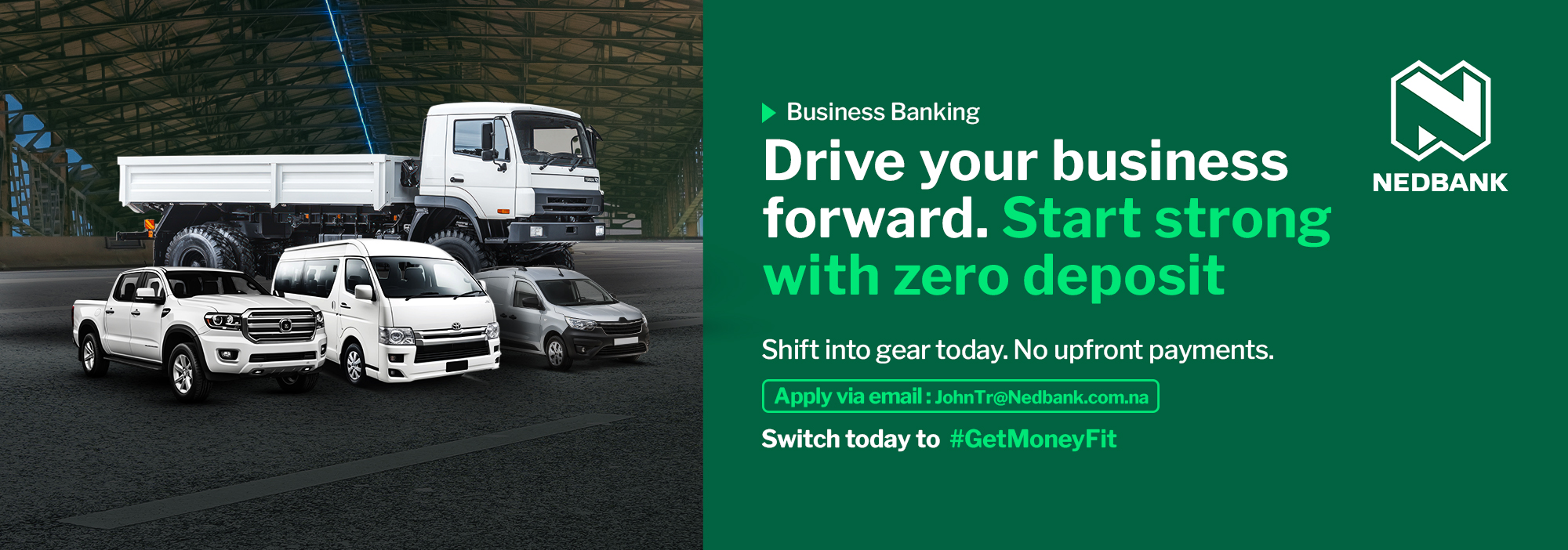 Drive business growth with vehicle and asset finance from Nedbank Namibia. Unlock opportunities with tailored financing solutions.