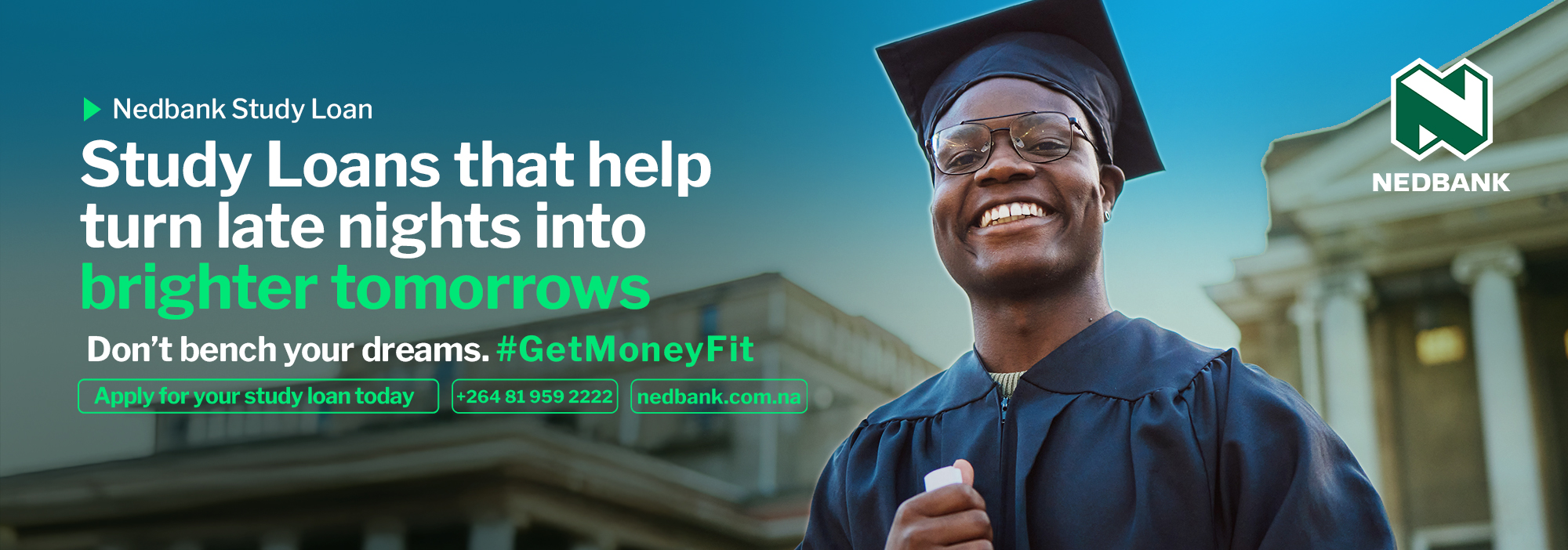 Getting a good education is an important step in life. Don’t let lack of funds stand in the way of reaching your goals and accomplishing your dreams. With a Nedbank Student Loan can get the required funds to pay for your registration, tuition, books and other study material, hostel or accommodation and any other fees related to your studies.
